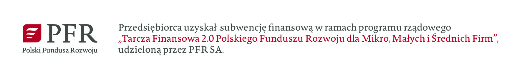 “Tarcza Finansowa 2.0 Polskiego Funduszu Rozwoju dla Mikro, Małych i Średnich Firm” udzieloną przez PFR S.A.