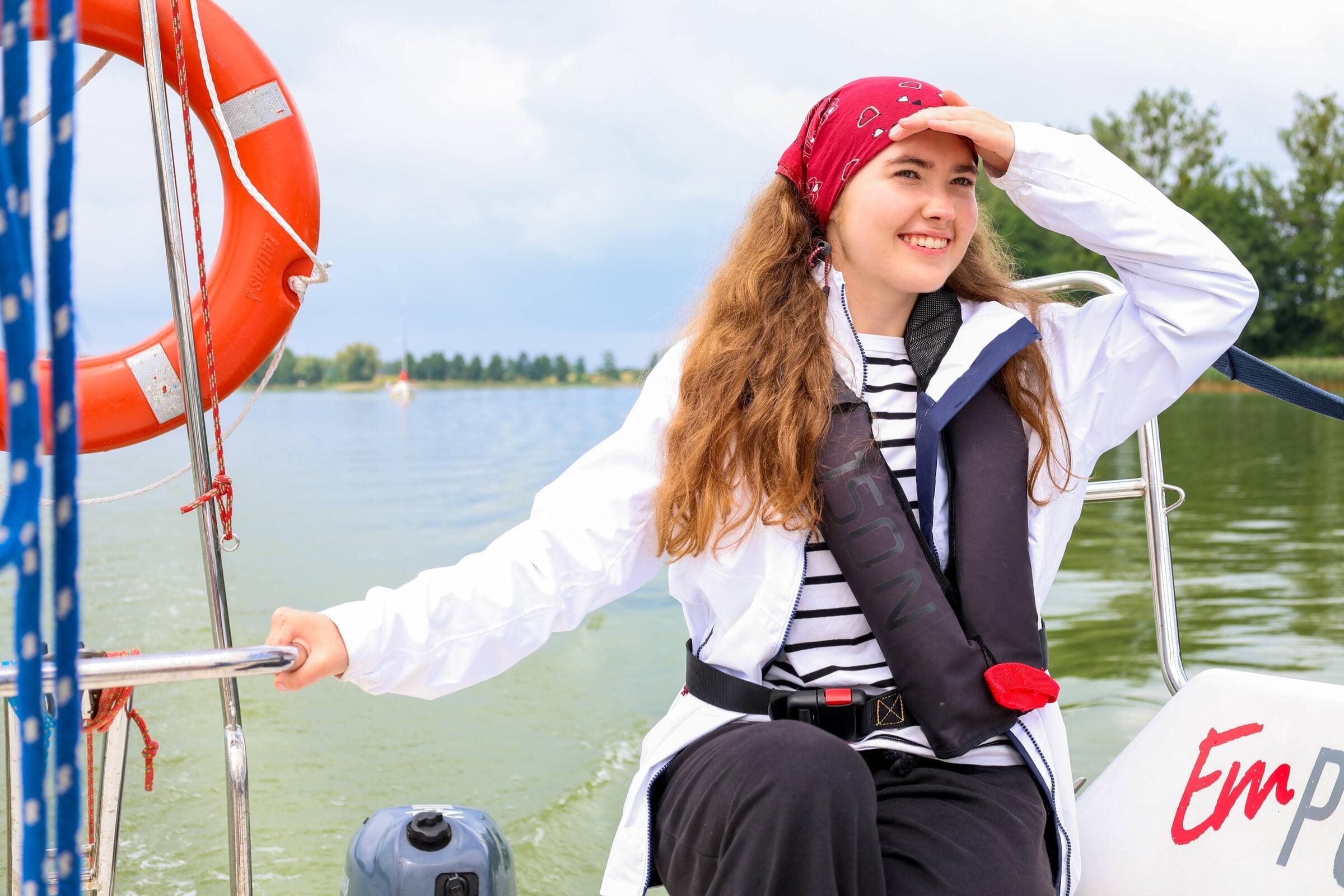 Wszyscy uczestnicy obozu są wyposażeni przez nas w kamizelki pneumatyczne! Łatwa w użyciu kamizelka, której uruchomienie następuje automatycznie po ewentualnym wpadnięciu do wody. W czasie żeglugi na wodzie zawsze będziemy pływać w kamizelkach pneumatycznych. Wygodne i niekrępujące ruchów naszym obozowiczom! A my mamy pewność, że są z nami bezpieczni na wodzie!