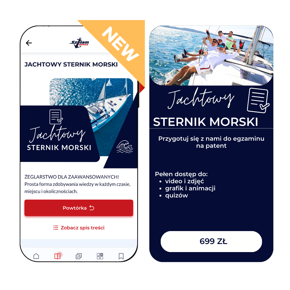Dostępne są bezpłatne moduły aplikacji ABC ŻEGLOWANIA oraz ABC MOTOROWODNE, oraz moduły płatne, które przygotowują do egzaminów na patenty żeglarskie i motorowodne.